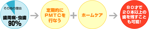 PMTCなどの歯科医院で受けるケアを行い、総合的なオーラルケアを徹底することで、プラークコントロールの効果を高めていきます。